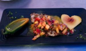 The session went well. I was pleased with my dish, and I think the judges were too. One should always ply the judges with Tequila, I think. You can see the complete recipe below, from an earlier post. Here is a picture of my presentation dish….