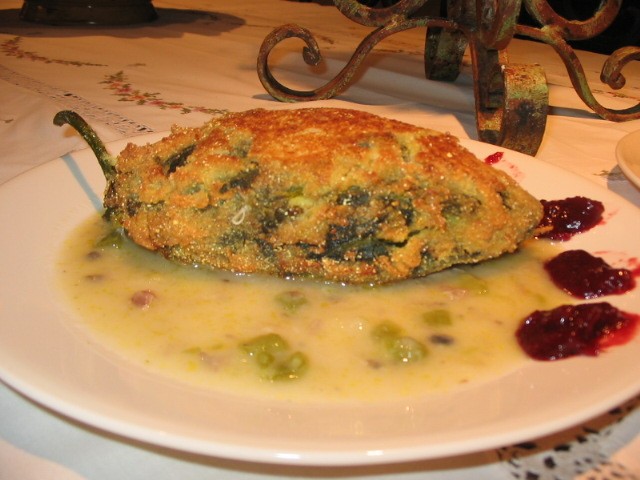 GREEN CHILE-a food from God if ever there was one.I used to live in New Mex some time back.As a matter of fact I owned a couple of joints there.One in Belen and one in Los Lunas;so I have more than a few fond memories of green chile stew,heck green chile anything.But try as I might I can never find true New Mex green Hatch peppers.So thanks for the memories(I think ).What is your feelings toward chicharron,green chile burros?Wow I just realized what a dork I’ve become.A simple reference to green chile and posole and a pic of chile relleno and I go nuts.Thanks.