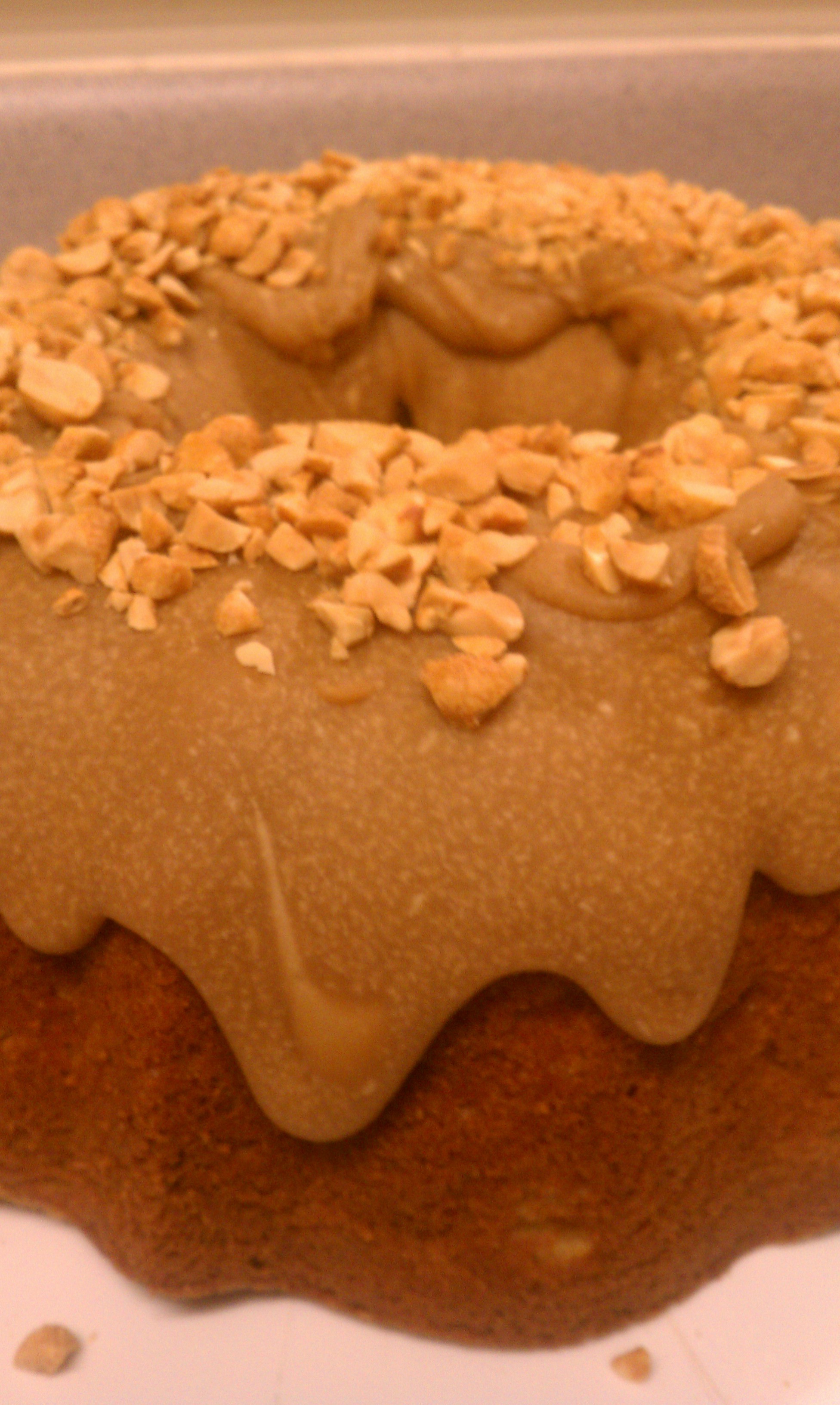 **If you wish to garnish with tiny caramel crab apples, dip the bottoms of the apples into the caramel just before you start beating it. Dip them into crush peanuts and set aside on a silicone mat or greased foil until cool. When the caramel on the cake has set up firmly, arrange the crab apples how you wish.