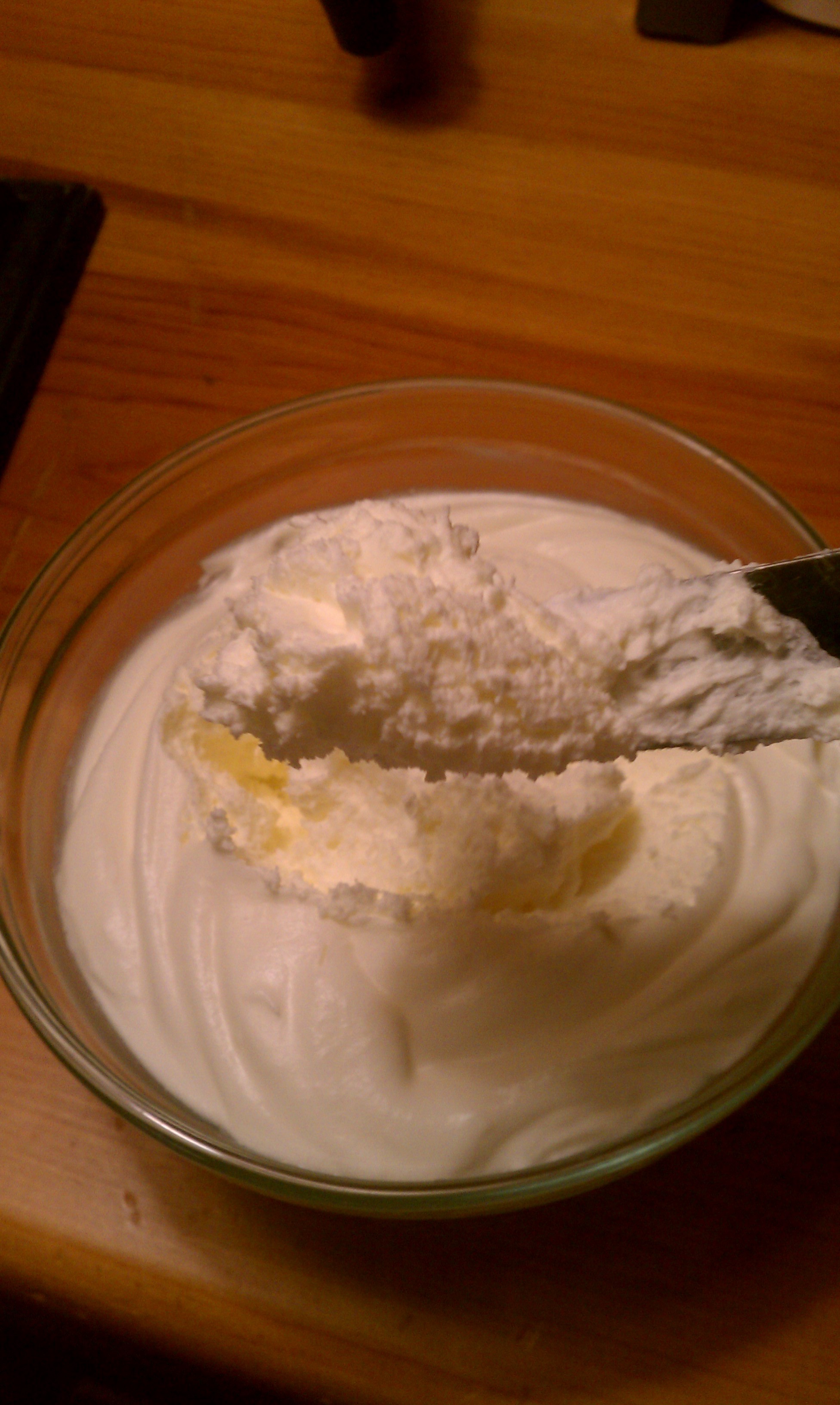 First of all, make it with your mixer, I would quadruple the recipe and use a quart of cream. Using a whisk attachment, Beat it until it’s stiff, and then keep beating it. After a sort time, you will start to see clear liquid running from the mass. Scrape down your bowl and beat a few minutes longer until you seem to have beaten all of the whey out. Turn your mixing bowl at an angle, and using a rubber spatula, start pressing butter up to the top side of the bowl, squeezing out the whey and allowing it to run to the bottom of the bowl. Pour it out as it build up. Do this for a few minutes, kneading the butter with the spatula, until no more whey is being expressed. Voila, butter!