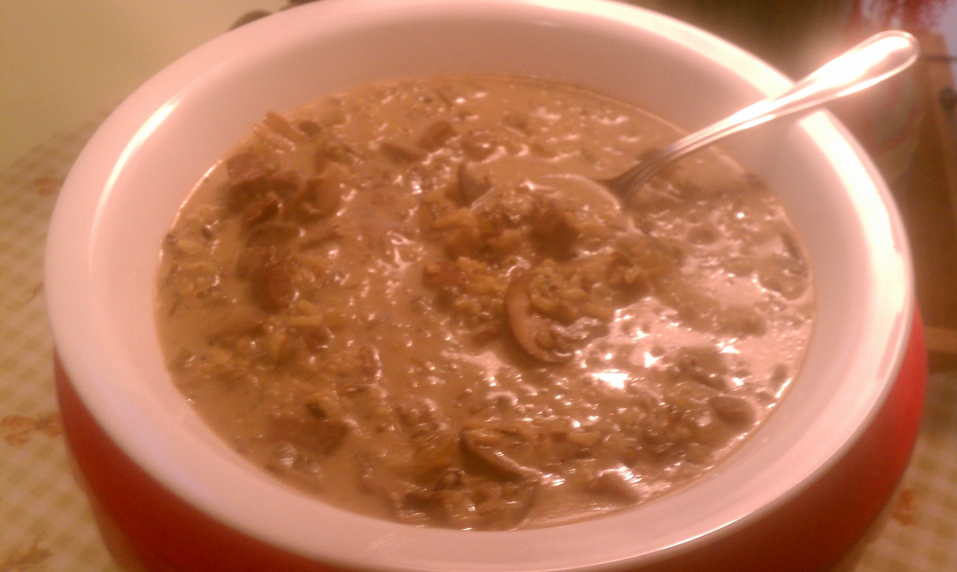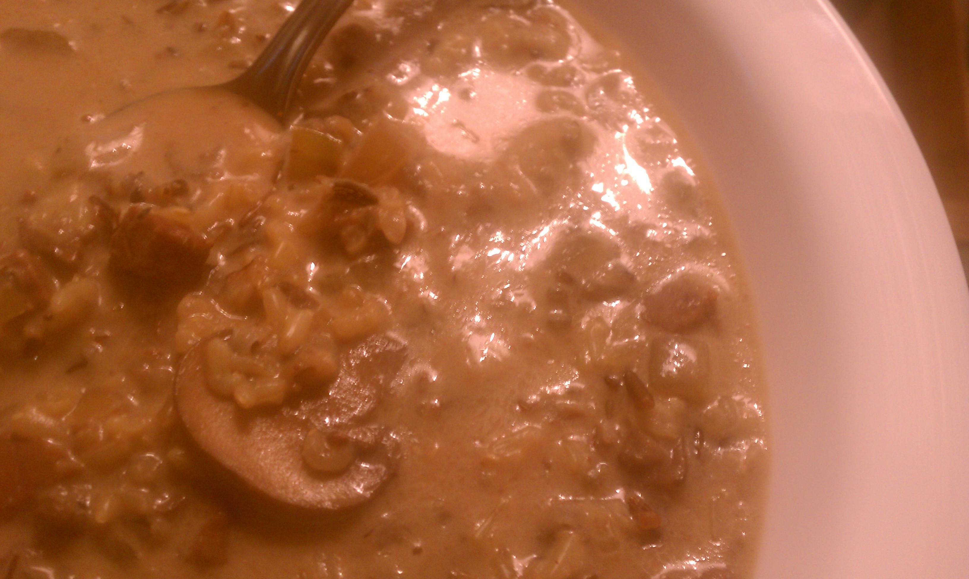 Beef Mushroom and Wild Rice “Stoup”, With Sherry and Cream
