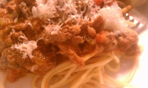 Elk is a very lean, mild, almost sweet meat.  If you don’t have elk, use a combination of super lean ground beef and ground pork loin.  Use a medium bodied pasta, such as spaghetti or linguine.  The secret to Bolognese is the long cook time.  The vegetables should eventually disappear into the sauce, which is where it gets its creamy body, and its concentrated flavor.  If you do not cook it low and slow as directed, you will not get the desired result.
