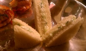 A traditional tea sandwich, this dainty little finger food can be kicked up a notch with a bit of jalapeno, if desired.  If you want men to eat them, slap some crisp bacon on them, and don’t cut the crusts off…English cucumbers are the best to use—they are the long thin ones that have ridges running down them.  Use regular salad cucumbers (seeded) if you cannot find them.
