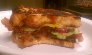 Grilled Cheese and Bacon Sandwich With Pickled Red Onions and Guacamole