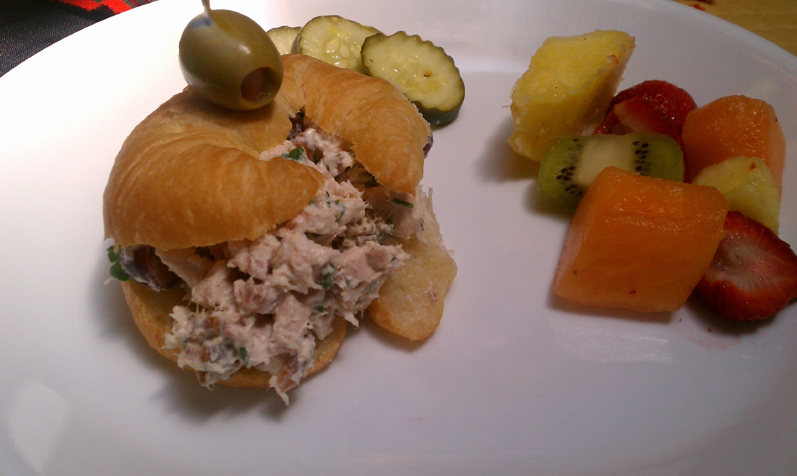 Remove chicken from bone and shred or chop into small bite sized pieces.  Combine all ingredients in a bowl, and chill until ready to serve.  Serve on a bed of mixed greens, or on croissants for sandwiches.