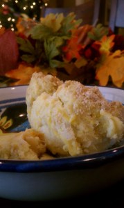 I tasted it. Clearly, they had gotten her order wrong. This wasn’t squash. This was something yummy. Something sweet and herbilicious, with a soufflé-like texture and a nice, buttery, bread crumb crust. Sort of like corn pudding.