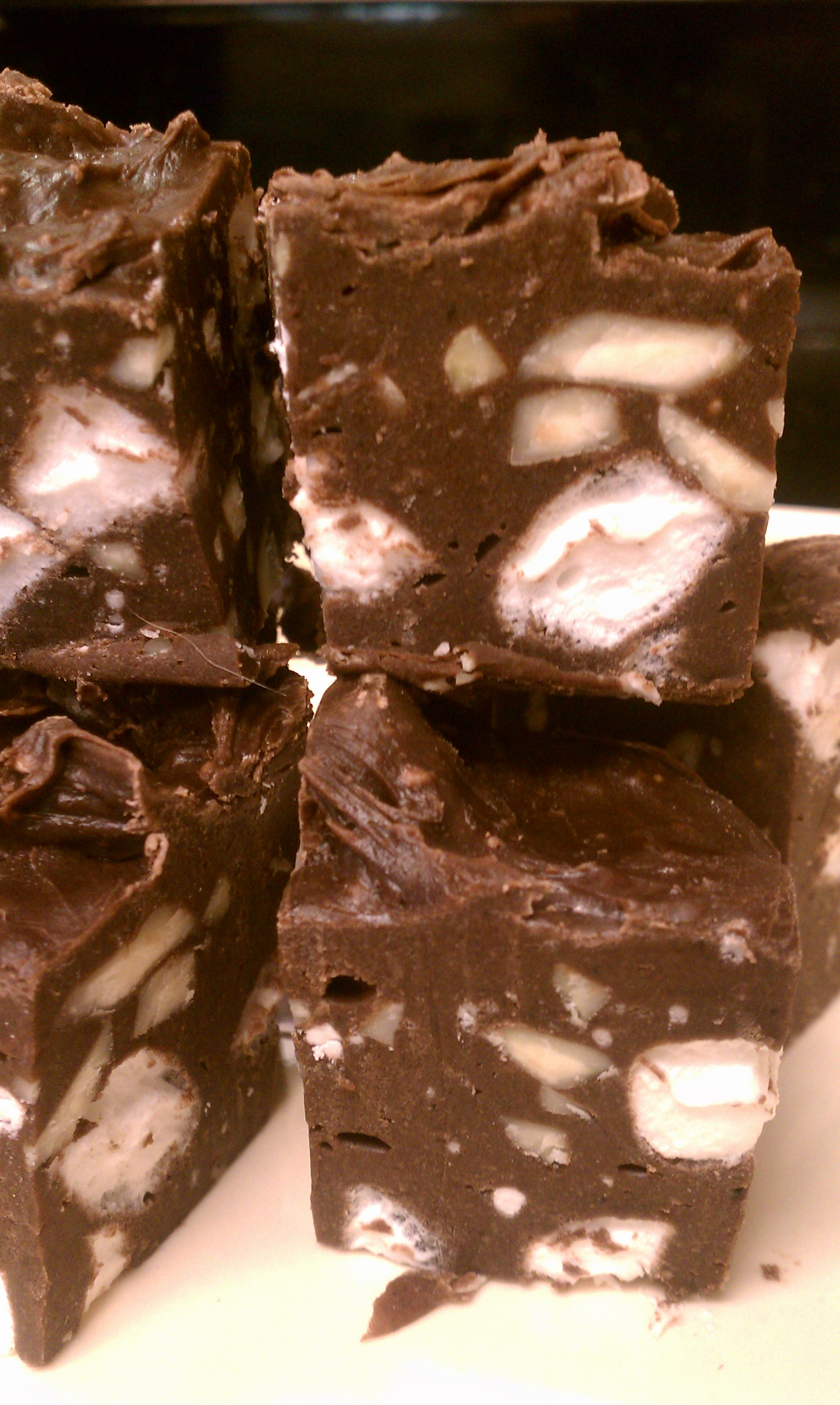 Okay, there was a big surprise here. The surprise was that it was edible. Decent even. I don’t think they’ll ever be selling it along the Embarcadero or anything, but it is certainly comparable to fudeg made with marshmallow fluff. The texture is nice…Fudgy but firm enough not to get gooey. The flavor is all chocolate and butter. No cheese. No kidding. Give it a try!