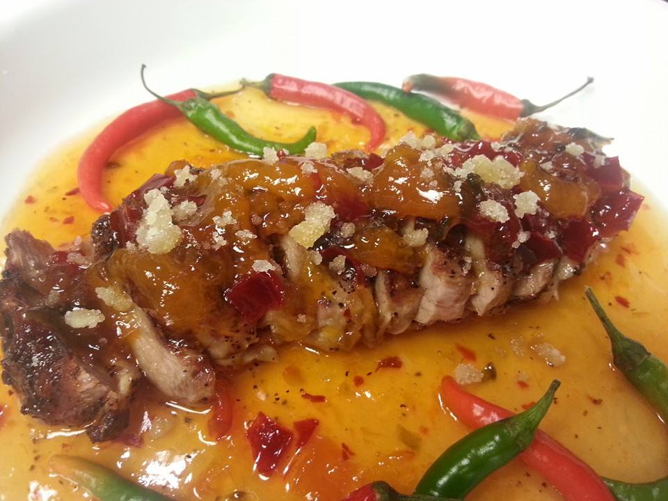Spicy Pressed Duck With Apricot Jalapeno Gastrique and Candied Ginger